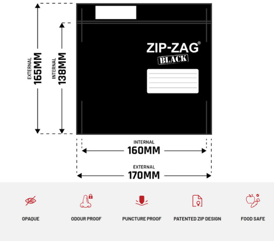 Zip-Zag small dual lock zip bag BLACK (single) 16x